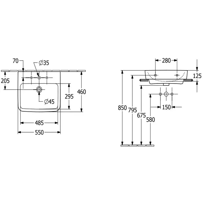Villeroy & Boch O'Novo Pаковина 55x46x17,5 см, без отв., подвесная, цвет: альпийский белый 4A41MFT2