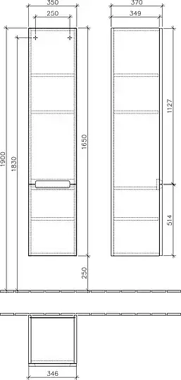 Villeroy & Boch Subway 2.0 Шкаф-пенал правый 35x37x165h см, цвет: eiche graphit A71000FQ