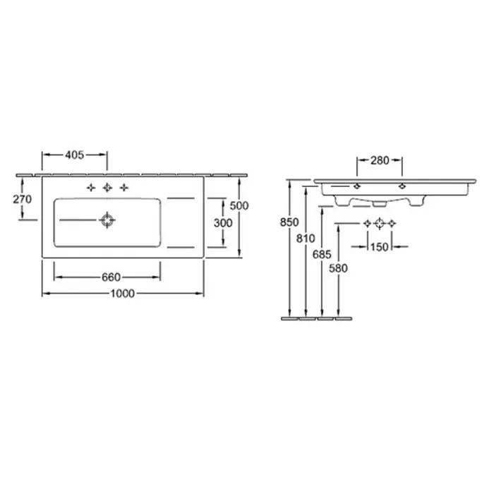 Villeroy & Boch Venticello Раковина, 2 отверстия под смеситель, 100x50 см, цвет: белый 4104AK01