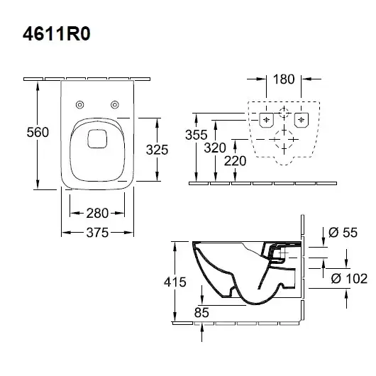 Villeroy & Boch Venticello Унитаз подвесной 37,5x56x41,5h см, цвет: stone white 4611R0RW