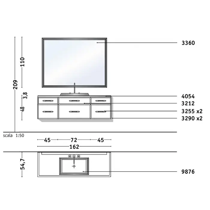 VITAGE milldue edition HILTON 07 Комплект мебели 90х55х31см подвесной, 2 раковины, зеркало, с подсветкой, отделка: стекло riso acidato, фурнитура: бронза