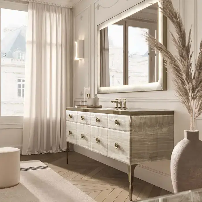 VITAGE milldue edition MAJESTIC 10 Комплект мебели 180х55х82см напольный, раковина, зеркало, с подсветкой, отделка: стекло alabastro gold, фурнитура: бронза