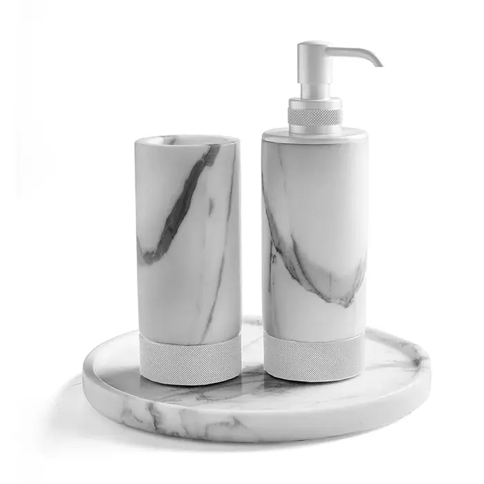 3SC Apuana 2.0 Комплект стакан, дозатор и лоток, цвет Statuario белый матовый AP99ABO