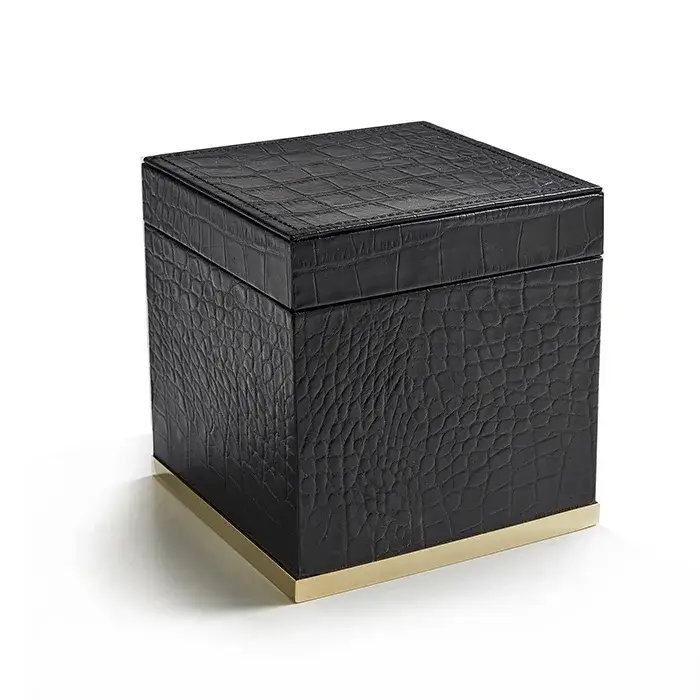 3SC Cocco Коробка с крышкой 14х14хh14см, черная кожа, цвет золото Lucido CO48AGD