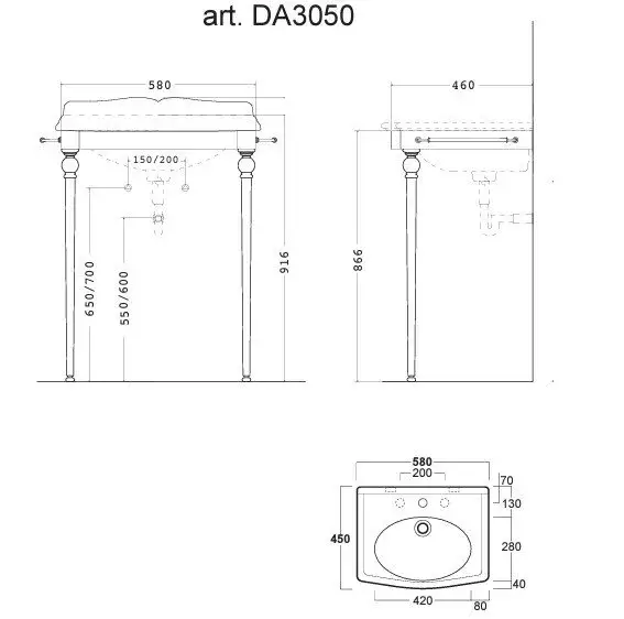 3SC Консоль Денди 85х54хh104см, с раковиной LA01, сиф. и полот., цвет хром DA3070SL