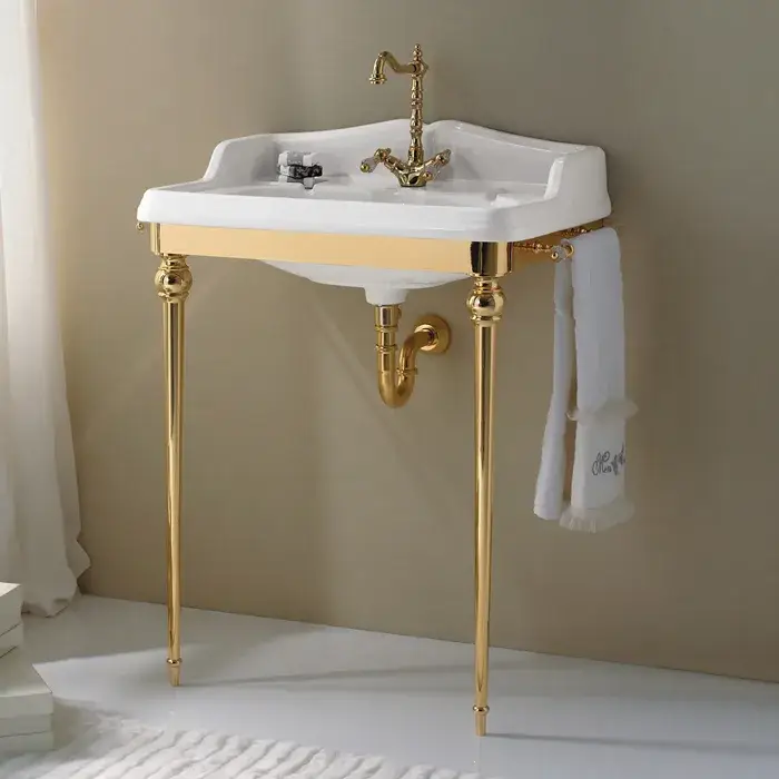 3SC Консоль Via Veneto 70х52хh96см, с раковиной и сиф., цвет белый матовый золото Lucido VV3070GD