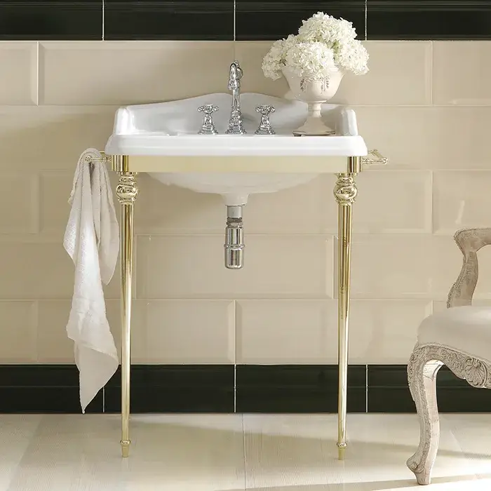 3SC Консоль Via Veneto 70х52хh96см, с раковиной и сиф., цвет белый матовый золото Lucido VV3070GD