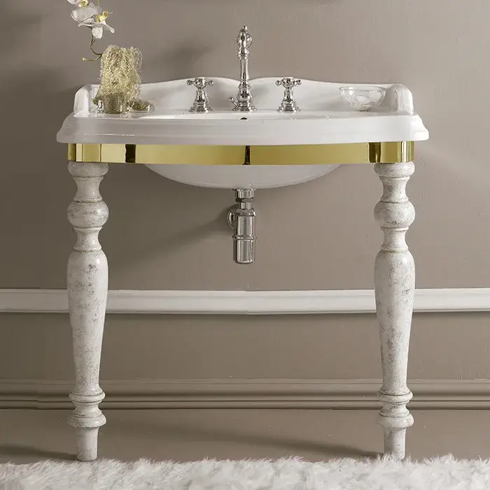 3SC Консоль Via Veneto 70х52хh96см, с раковиной и сиф., цвет белый матовый золото Lucido VV3070GD