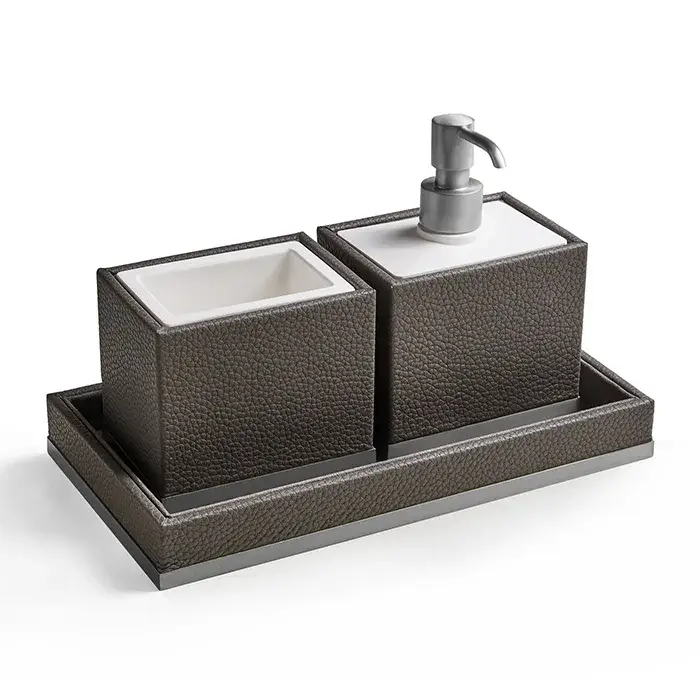 3SC Milano Комплект стакан, дозатор, лоток, цвет коричневая эко-кожа хром ML98ASL