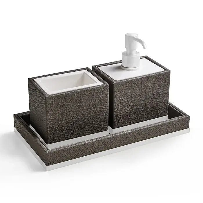 3SC Milano Комплект стакан, дозатор, лоток, цвет коричневая эко-кожа белый матовый ML98ABO