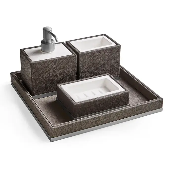 3SC Milano Комплект стакан, дозатор, мыльница, лоток, цвет коричневая кожа хром ML99ASL