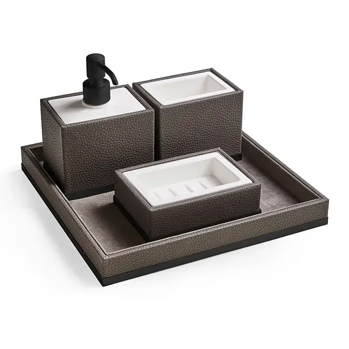 3SC Milano Комплект: стакан, дозатор, мыльница, лоток, цвет: коричневая эко-кожа/черный мат. ML99ANO