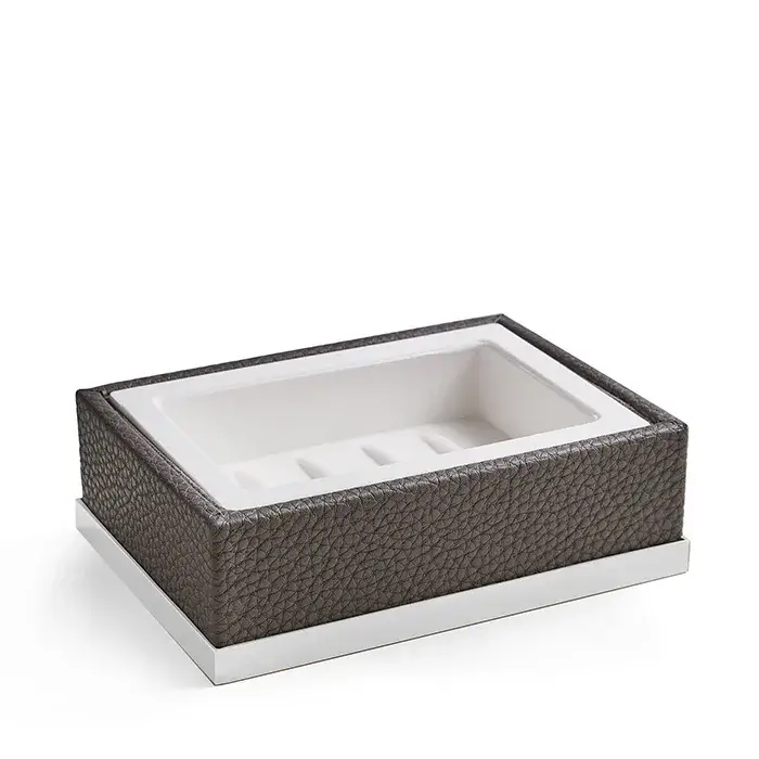 3SC Milano Мыльница с керамической чашей, настольная, с эко-кожей, цвет: белый матовый ML01ABO