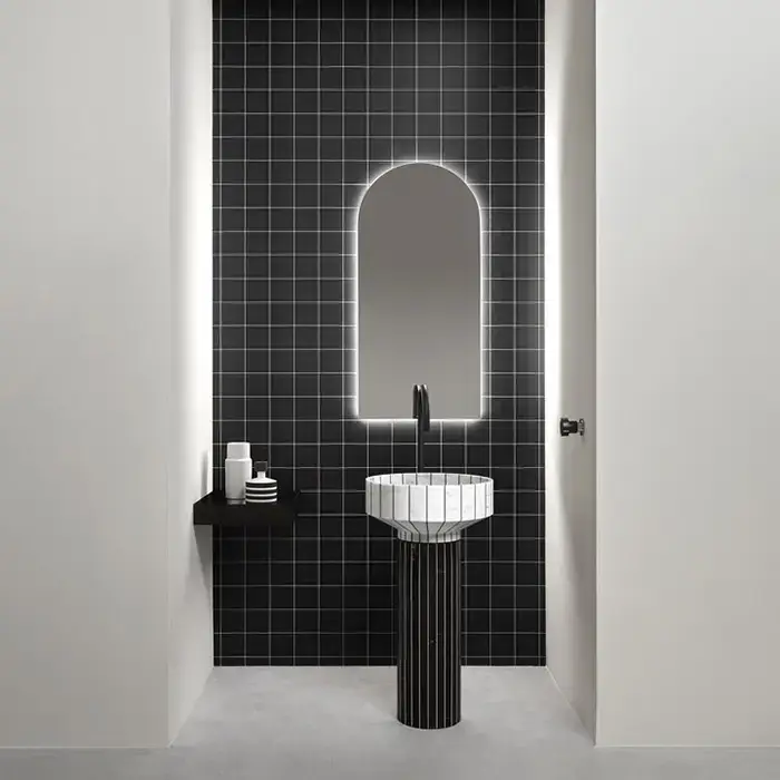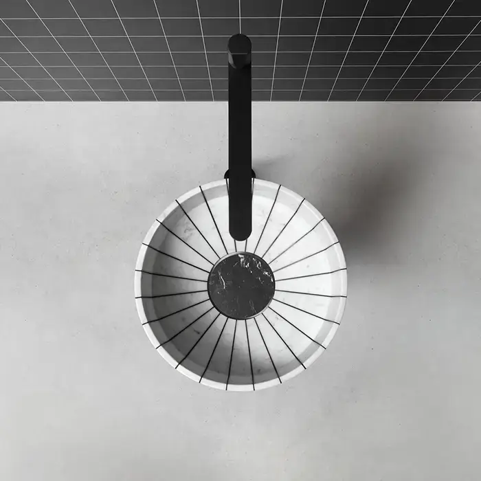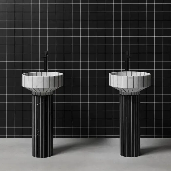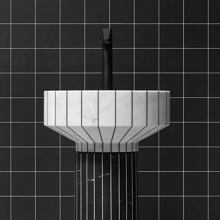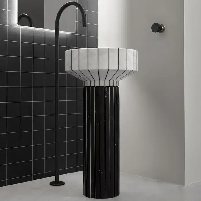 Antonio Lupi 024 Раковина 45х85 см, без отв., напольная, слив в пол, с сифоном, гибким шлангом и донным клапаном, пьедестал Nero Marquinia, цвет: Carrara