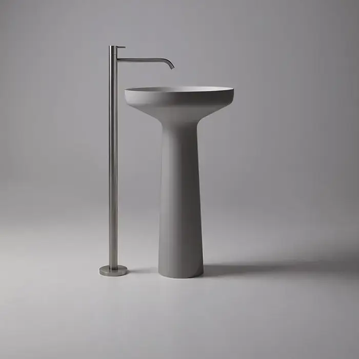 Antonio Lupi Ago Раковина 50х85 см, без отв., напольная, слив в пол, с сифоном, гибким шлангом и донным клапан, Flumood, внешний цвет: Cemento, внутри белый