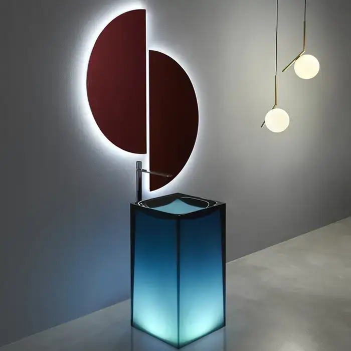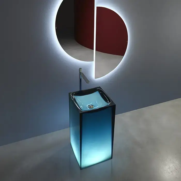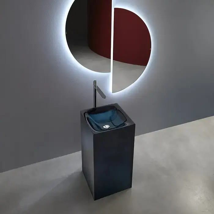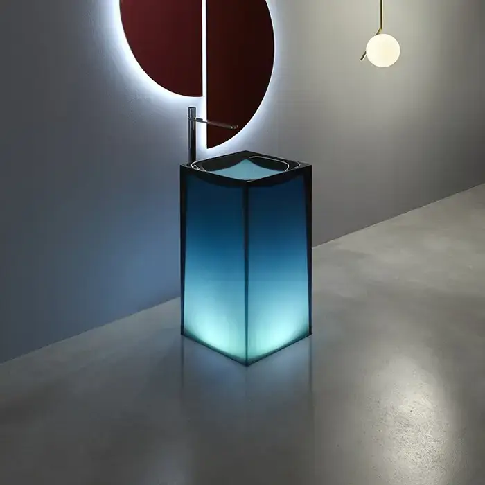 Antonio Lupi Aura Раковина 45х45х85 см, без отв., напольная, слив в пол, с дон. клапан, сифоном и трубой слива, Cristalmood, цвет: Ceruleo