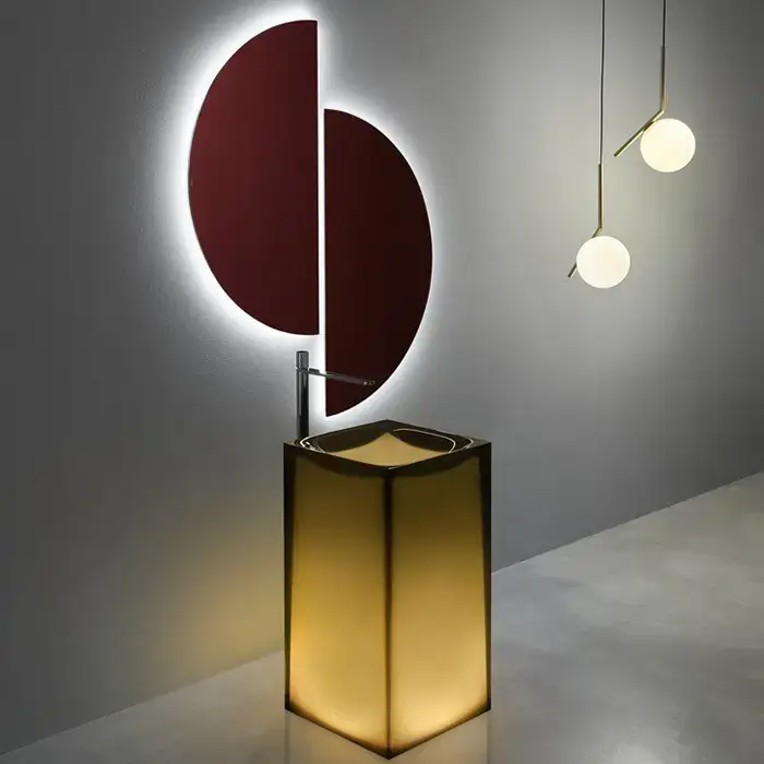 Antonio Lupi Aura Раковина 45х45х85 см, без отв., напольная, слив в пол, с дон. клапан, сифоном и трубой слива, Cristalmood, цвет: Oleo