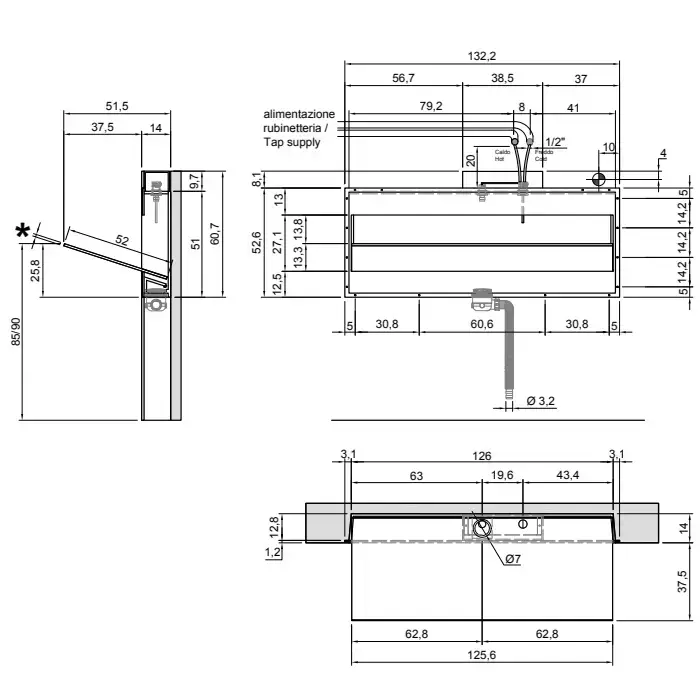 Antonio Lupi Battigia Раковина 126х51.5х60.7 см, без отв., цвет: белый