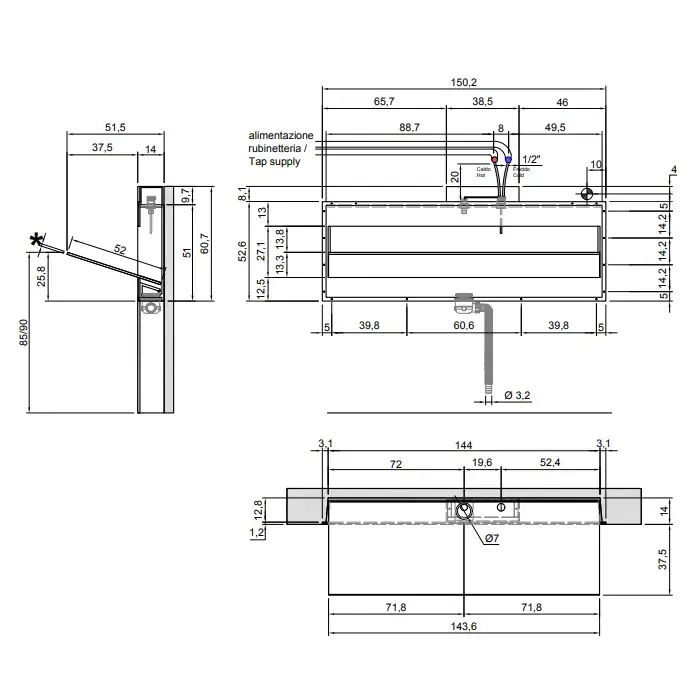 Antonio Lupi Battigia Раковина 144х51.5х60.7 см, без отв., цвет: белый