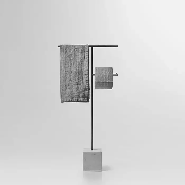 Antonio Lupi Bivio Стойка напольная 65см., с полотенцедержателем и держателем туалетной бумаги, база из мрамора Carrara satinato, структ Nero goffrato