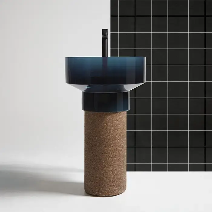 Antonio Lupi Borghi Раковина 50х90 см, без отв., напольная, слив в пол, с донным клапаном и сифоном, пьедестал из пробки Natural, Cristalmood, цвет: Oleo