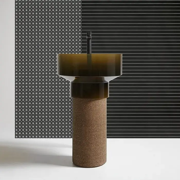 Antonio Lupi Borghi Раковина 50х90 см, без отв., напольная, слив в пол, с донным клапаном и сифоном, пьедестал из пробки Natural, Cristalmood, цвет: Oleo