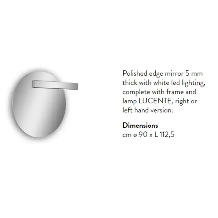 Antonio Lupi Circus Зеркало Ø108cм., с белой светодиодной подсветкой, с блестящей кромкой, с левосторонним светильником LUCENTE, на раме
