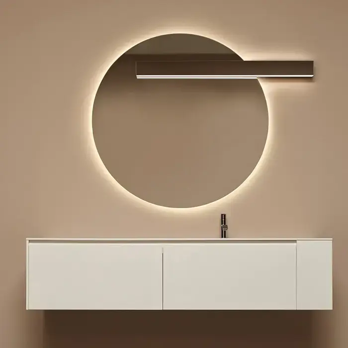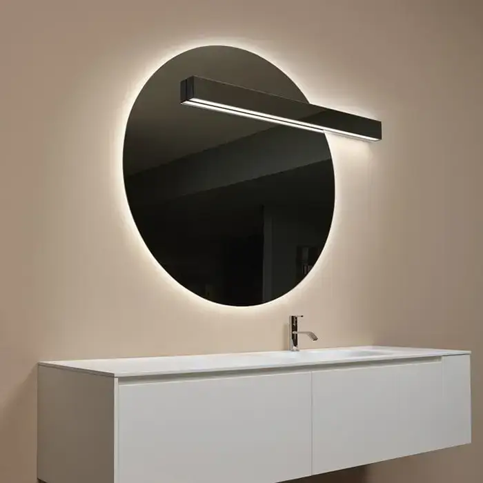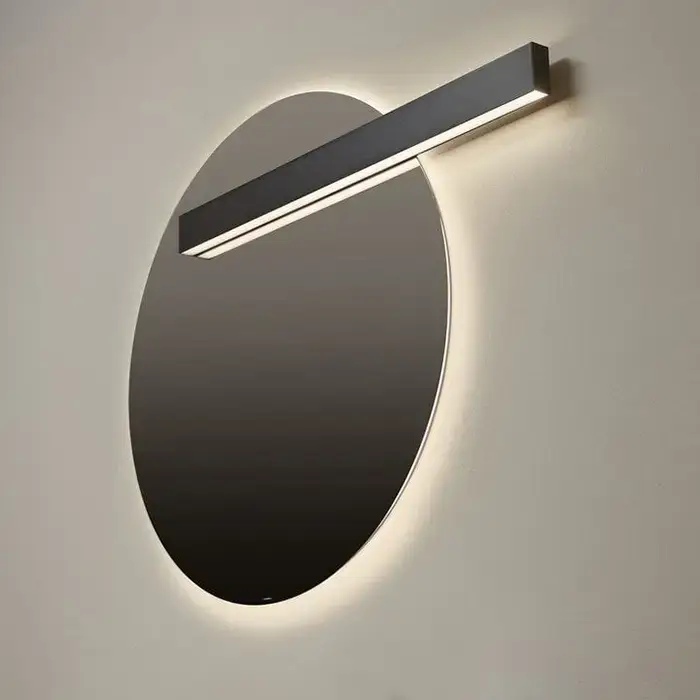 Antonio Lupi Circus Зеркало Ø108cм., с белой светодиодной подсветкой, с блестящей кромкой, с правосторонним светильником LUCENTE, на раме