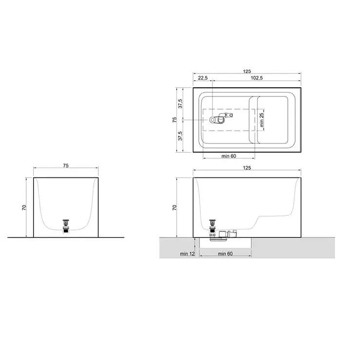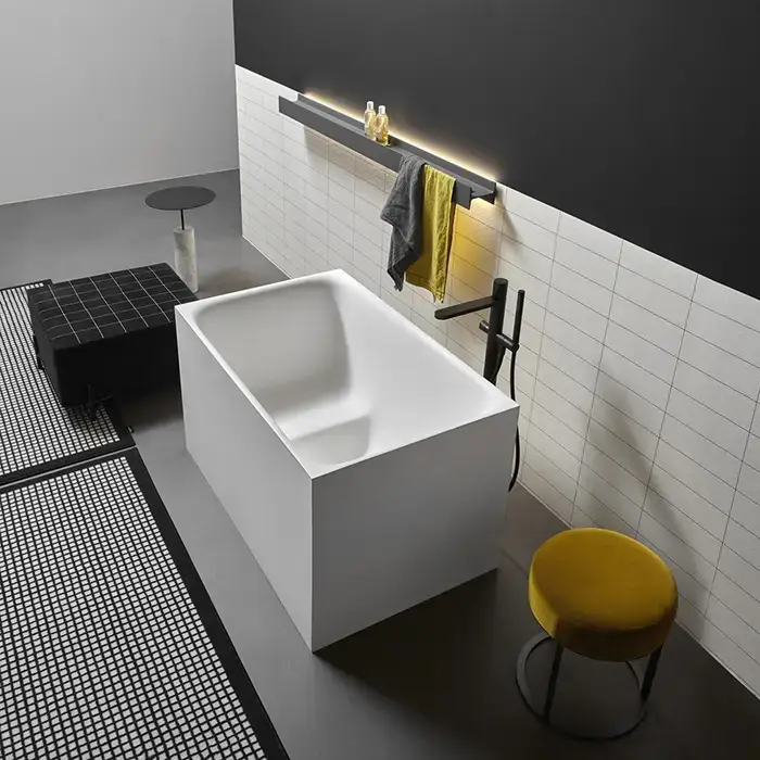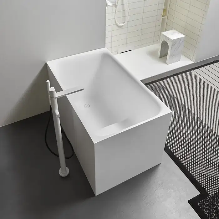 Antonio Lupi Cuba Ванна 125х75х70см., сидячая, отдельностоящая, скрытый автоматический перелив, сифон, донный клапан, Flumood, цвет: белый матовый