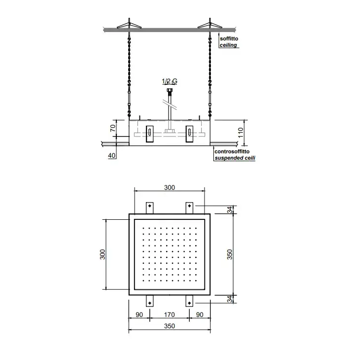 Antonio Lupi Душевая система Meteo Встраиваемый верхний душ 52 x 35 x 11 см. цвет. Зеркальная сталь