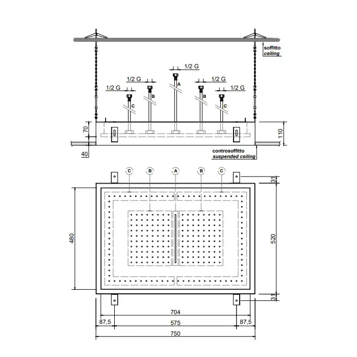 Antonio Lupi Meteo Встраиваемый верхний душ, 52x35x11см, цвет: зеркальная сталь