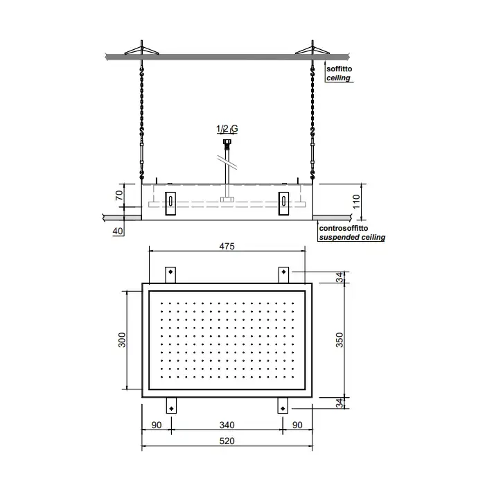 Antonio Lupi Meteo Встраиваемый верхний душ, 52x35x11см, цвет: зеркальная сталь
