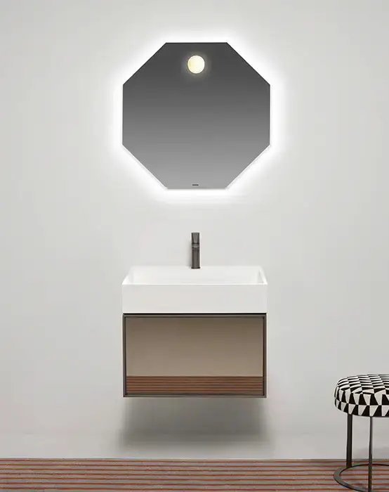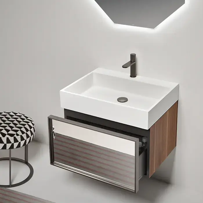 Antonio Lupi Gesto Комплект подвесной мебели 63х50хh50см, с раковиной, с 1 ящиком с зеркальным фасадом, цвет: Noce canaletto/vetro argentato bronzo
