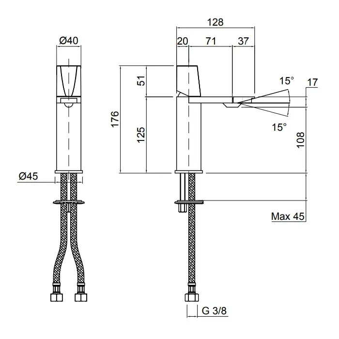 ANTONIO LUPI INDIGO Смеситель для раковины на 1 отверстие, излив 165 мм., ручкая черная матовая, цвет: сатинированная сталь