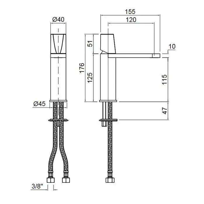 ANTONIO LUPI INDIGO Смеситель для раковины на 1 отверстие, излив 165 мм., ручкая черная матовая, цвет: сатинированная сталь