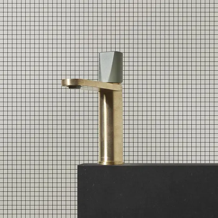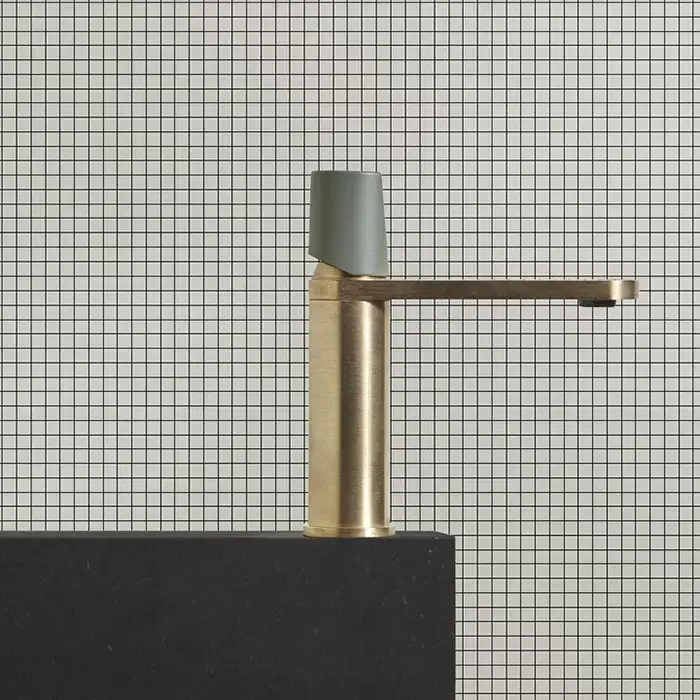 ANTONIO LUPI INDIGO Смеситель для раковины на 1 отверстие, излив 165 мм., ручка матовая Lambretta, цвет: сатинированная натуральная латунь