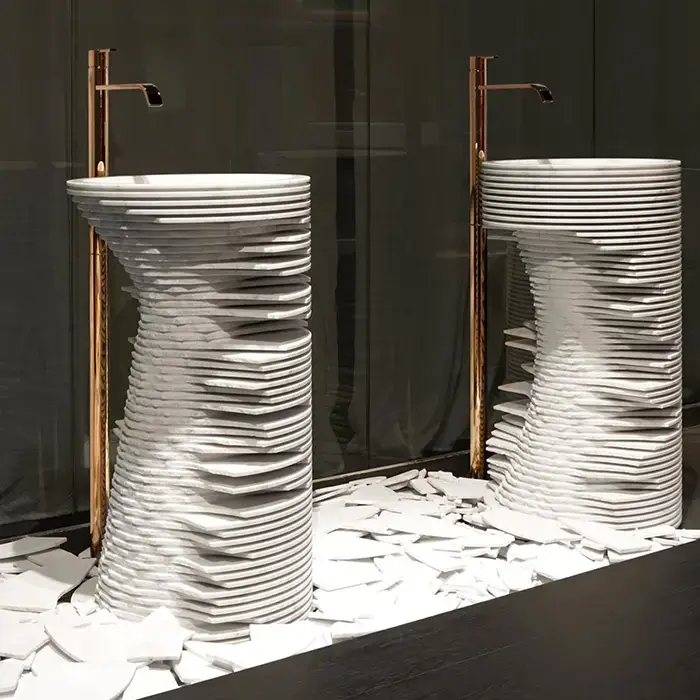 Antonio Lupi Introverso Раковина 45х85 см, без отв., без перелива, с д/клапаном, сифоном, слив в пол, мрамор, цвет: Marmo Carrara