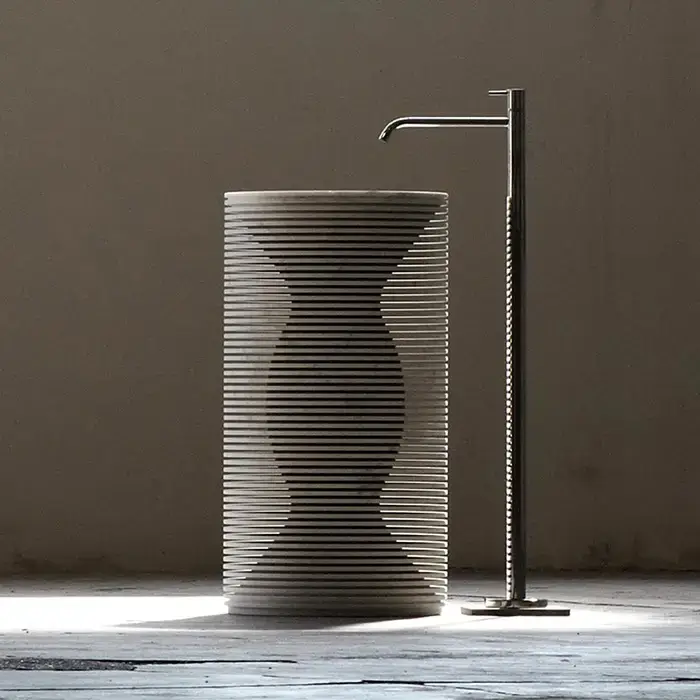 Antonio Lupi Introverso Раковина 45х85см, без отв., без перелива, с д/клапаном, сифоном, слив в пол, мрамор, цвет: Marmo Carrara