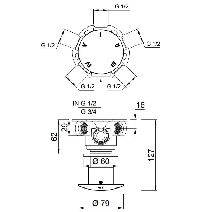Antonio Lupi Minimayday Переключатель потоков на 2, 3, 4 или 5 выходов, для душа, цвет: шлифованная сталь