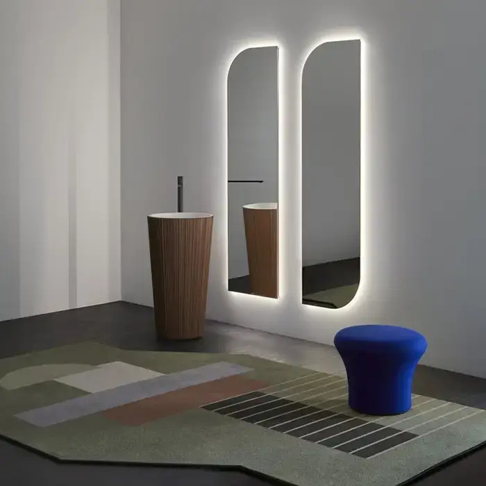 Antonio Lupi Plisse Раковина 47х85 см, без отв., напольная, слив в пол, с сифоном, донным клапаном и шлангом, Flumood, внешний цвет: Corten powder, внутри белый