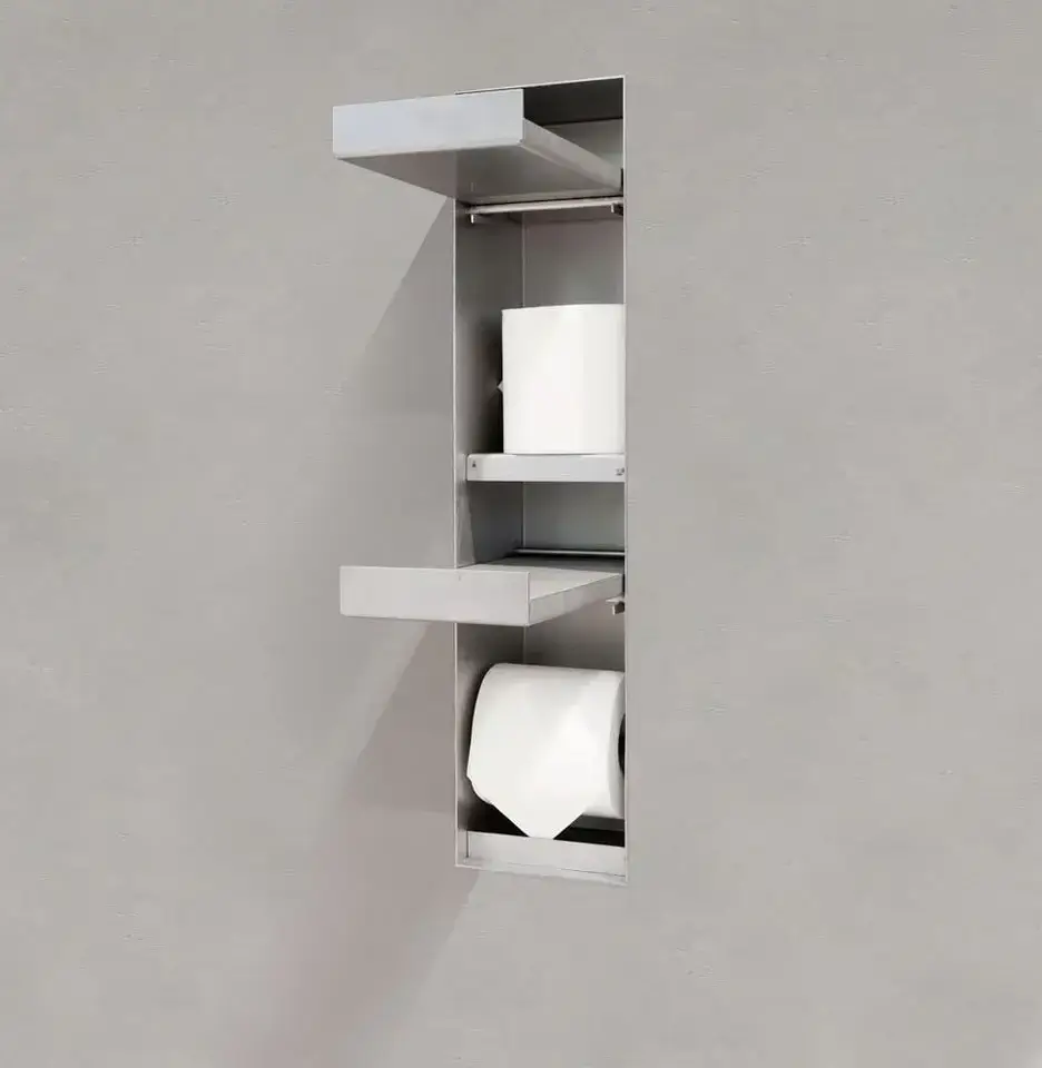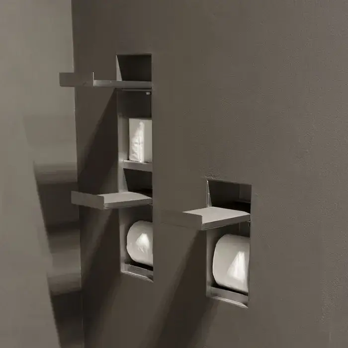 Antonio Lupi Sesamo Держатель для туалетной бумаги и запасного рулона, встраиваемый в стену, из нержавеющей стали AISI 304, отделка алюминий
