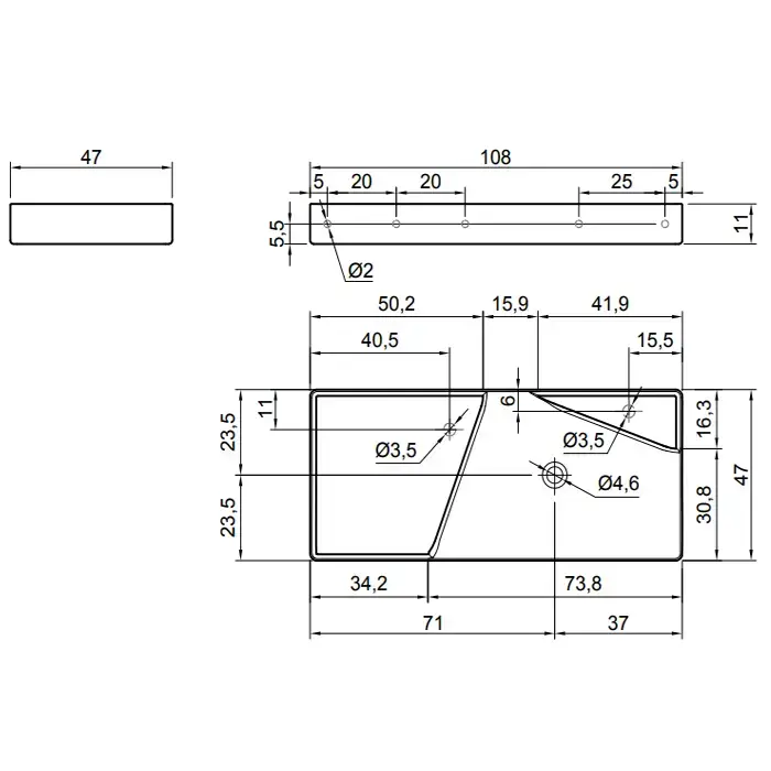ANTONIO LUPI SIMPLO Раковина 45х11 см, без отв., для установки на столешницу, с самотечным донным клапаном, Flumood, цвет: белый