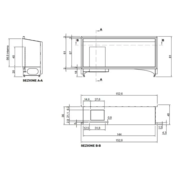 Antonio Lupi Teka Камин 144х40х81см, встраиваемый в стену, на биоэт, корп из стали, с противопожарн стеклом и горелкой LAFLACA, покрыт черной краской