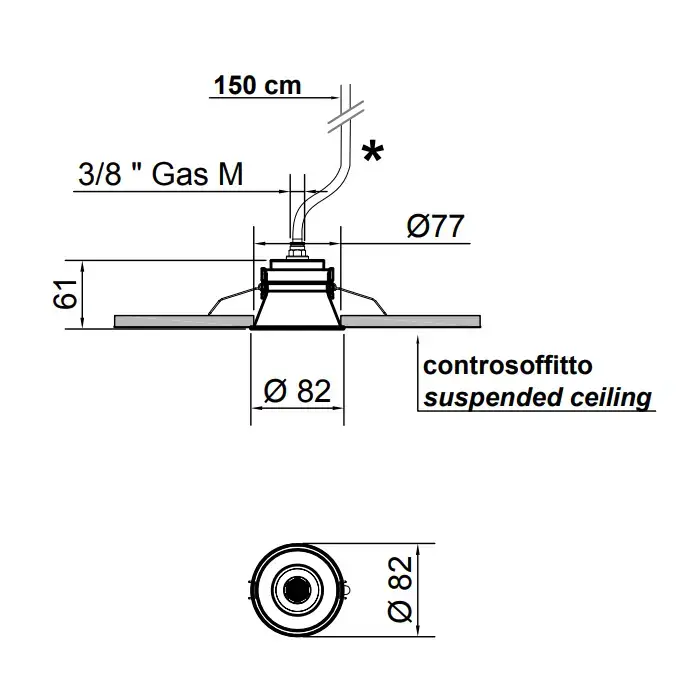 Antonio Lupi Zenit Встраиваемый верхний душ, Ø 8см, цвет: черный