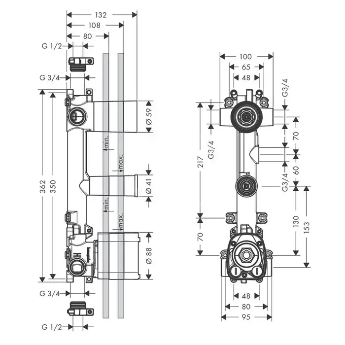 Axor Citterio E Скрытая часть для термостата c панелью, для 2 потребителей 36701180