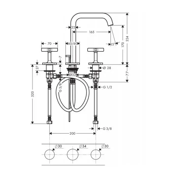 Axor Citterio E Смеситель для раковины двухвентильный на 3 отверстия с донным клапаном, цвет: хром 36108000