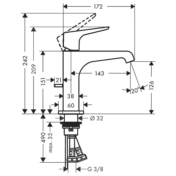 Высота излива, см