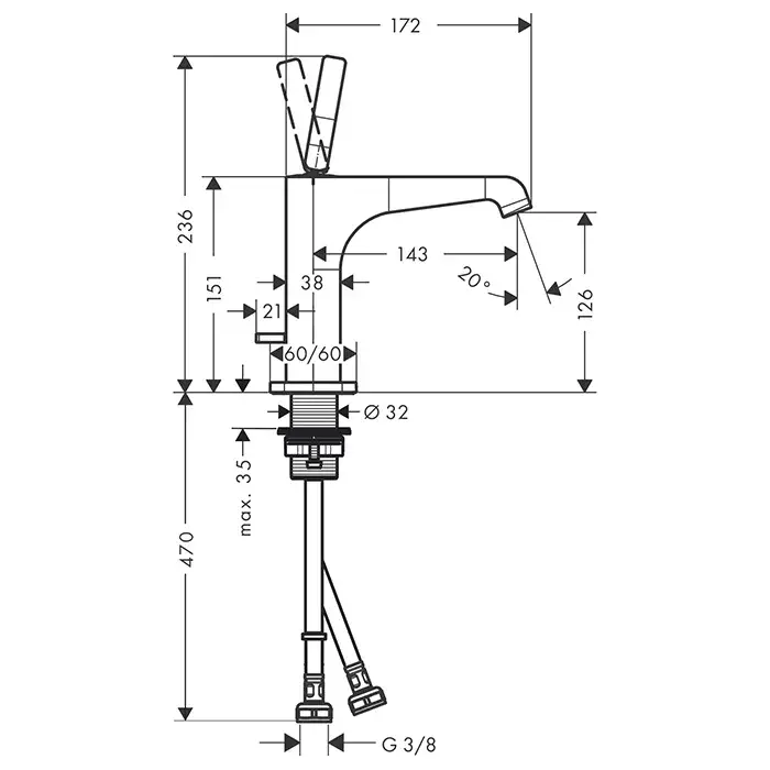 Высота излива, см