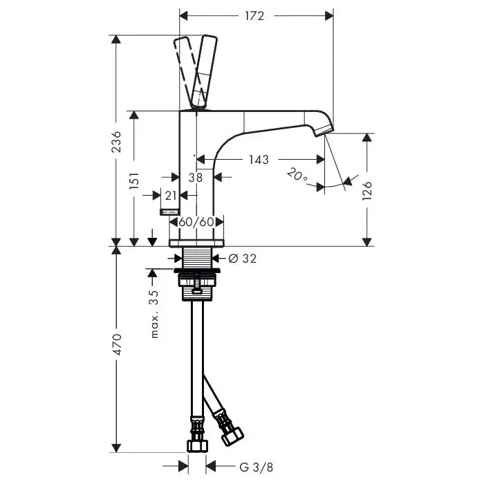 Axor Citterio E Смеситель для раковины однорычажный на 1 отверстие с донным клапаном, цвет: хром 36100000