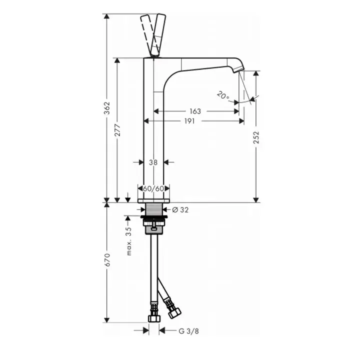 Axor Citterio E Смеситель для раковины высокий на 1 отверстие с донным клапаном, цвет: хром 36104000